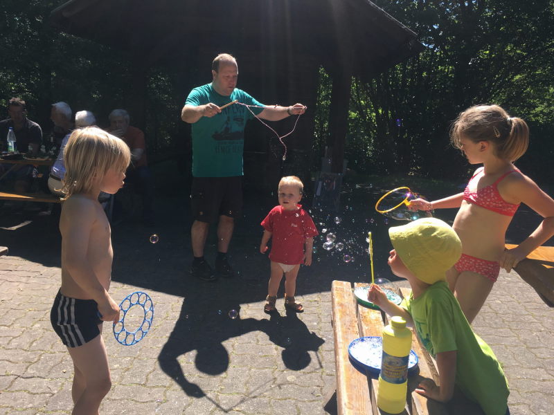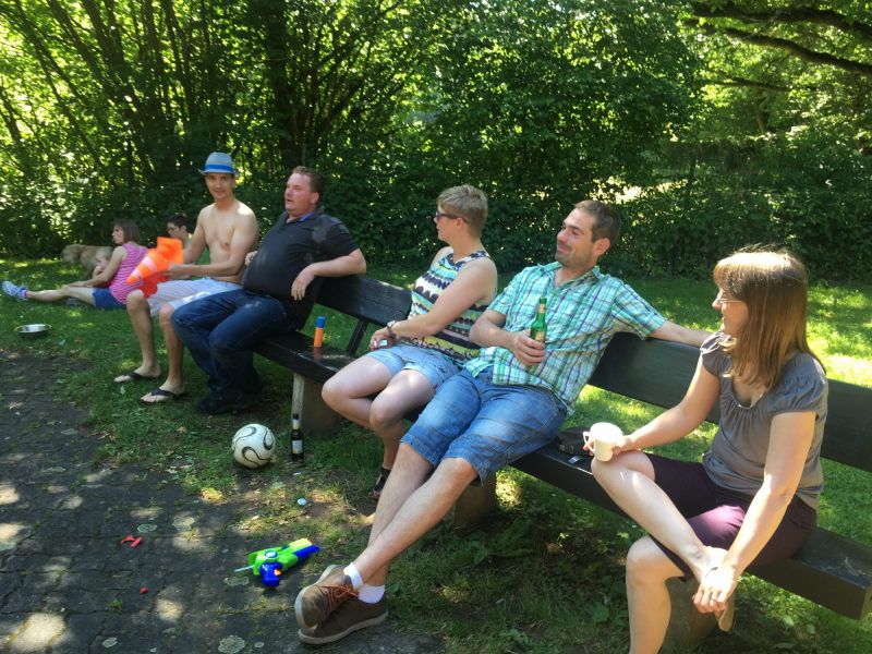 Bei Kaffee und Kuchen, Würstchen, Steaks und Salaten wurde der verbleibende Nachmittag in geselliger Runde bei guten Gesprächen verbracht. Auch die Kinder kamen mit Wasserbomben, Fußball und vielen anderen Spielen auf ihre Kosten, sodass der Tag rundum gelungen war.