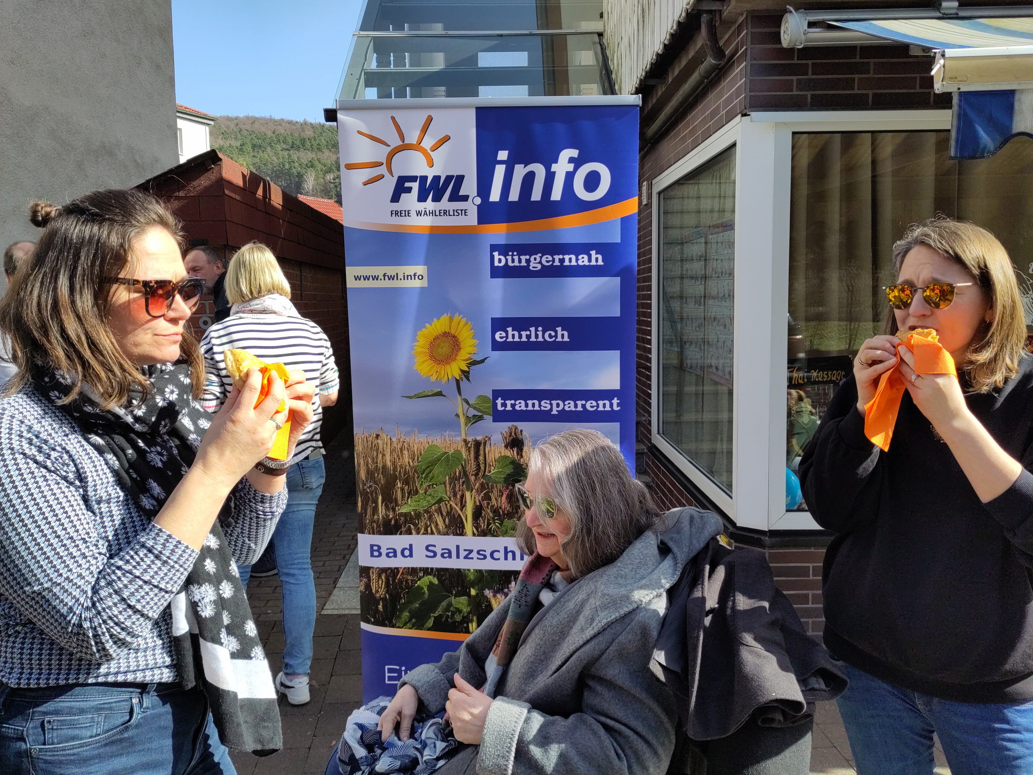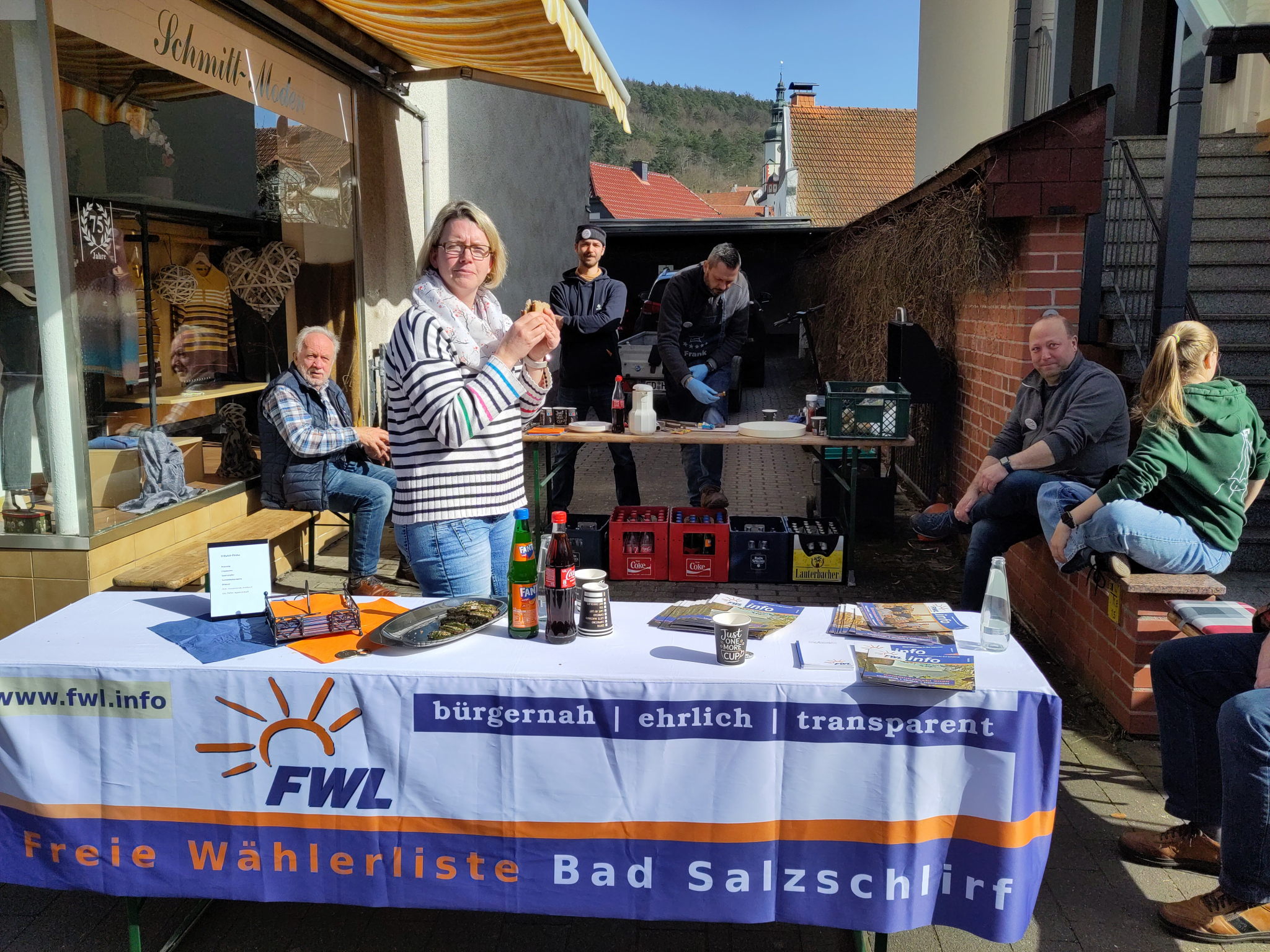 hat der Wahlkampf mit der letzten Woche seinen Abschluss gefunden. Ein letzter Aufruf per Plakate, alle Flyer verteilt und die letzten Veröffentlichungen gemacht. Es gab auch noch zwei Mal die Möglichkeit die FWL-Liste im Gespräch kennen zu lernen. Einmal beim Einkauf in der Lindenstraße "... auf eine Wurst" und weiterhin bei schönsten Wetter im Neubaugebiet "... auf eine Brezel". Hier wurde noch einmal ganz deutlich, es herrscht kein Desinteresse, sondern die kommunalpolitische Demokratie ist auf jeden Fall schon einmal ein Gewinner bei dieser Wahl.