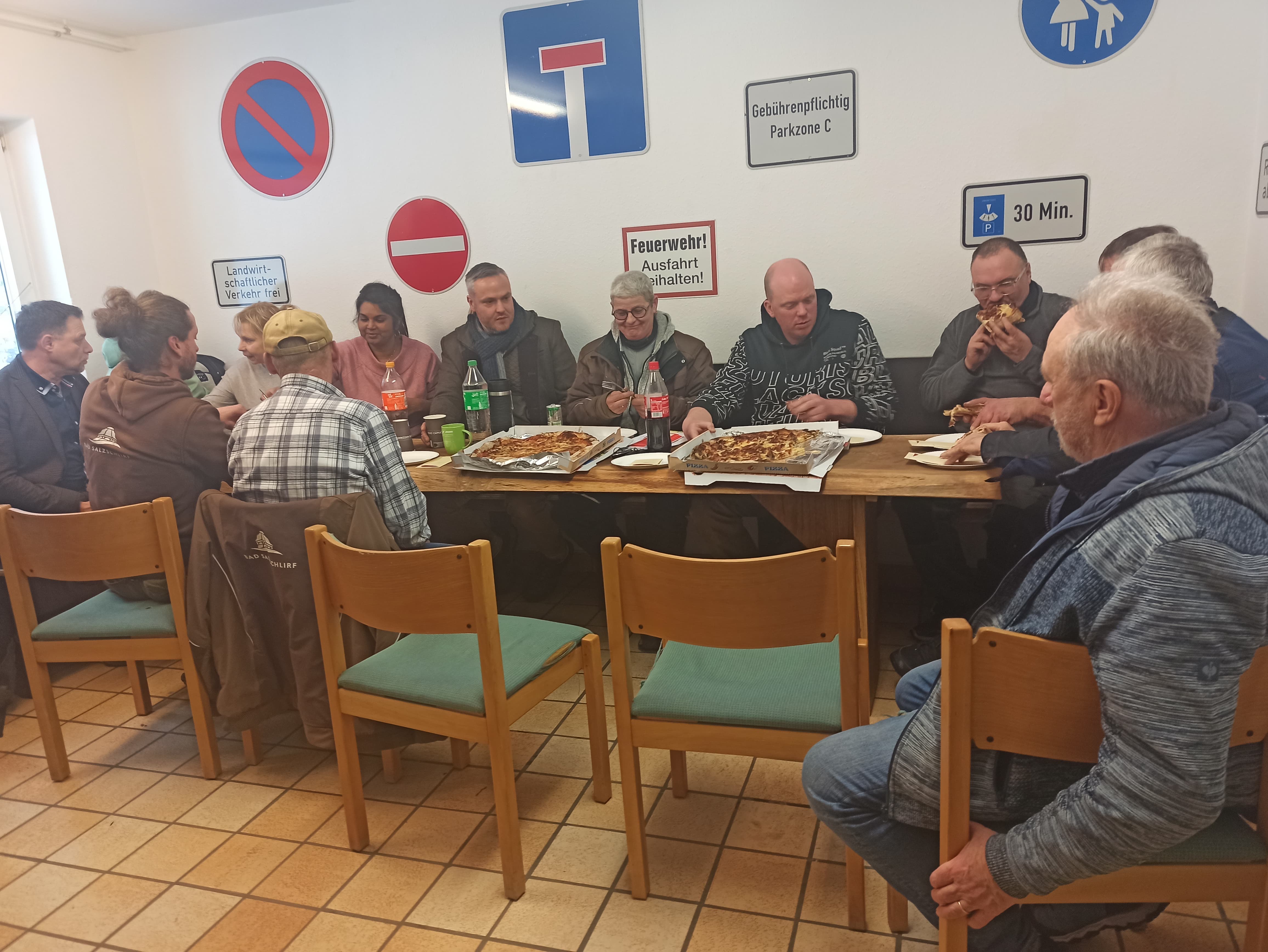 Am Mittwoch hatten wir die Gelegenheit, gemeinsam mit unseren neuen Kandidatinnen und Kandidaten sowie unserem Bürgermeister den Wirtschaftshof zu besichtigen. Ein herzliches Dankeschön gilt Daniel Otterbein und seinem Team, die uns diesen wertvollen Einblick ermöglicht haben. Während der Führung durch den Hof und die verschiedenen Räume blieb genügend Zeit für Pizza, erfrischende Getränke und anregende Gespräche sowie Austausch.