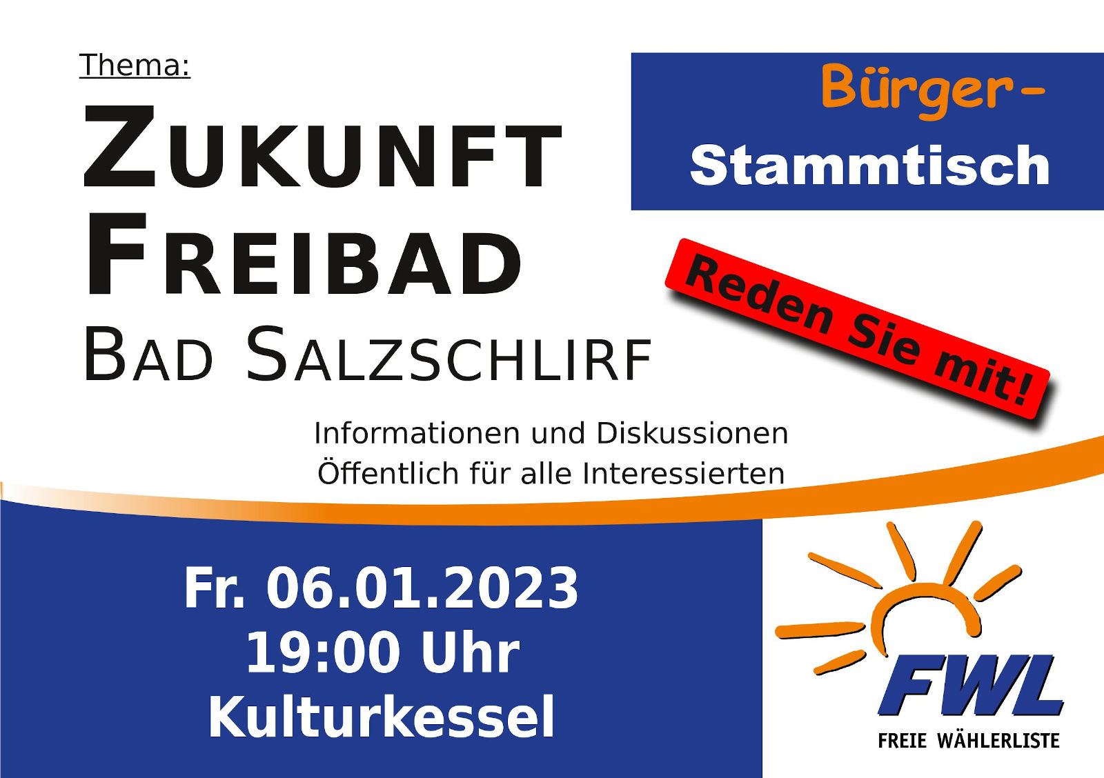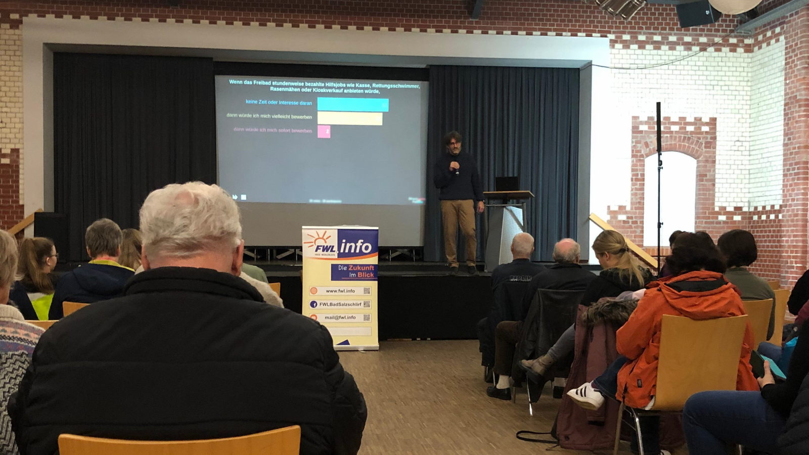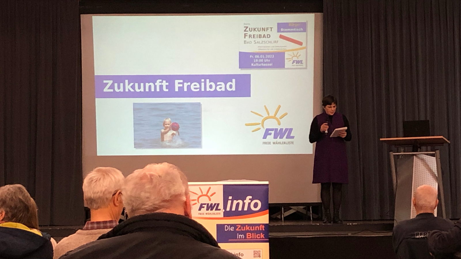 Im historischen Kulturkessel von Bad Salzschlirf erlebten Interessierte am Dreikönigstag einen außergewöhnlichen Fachvortrag. Fast 50 Zuhörerinnen und Zuhörer verfolgten gespannt dem Thema Zukunft Freibad, durchgeführt vom Fraktionsvorsitzenden der FWL Dr. David Post, von Beruf eigentlich Anästhesist. Als Motivation für diese außergewöhnliche Informationsveranstaltung nannte der Referent, dass der Betrieb eines Freibades eine Gemeinschaftsaufgabe ist, die nur gelingen kann, wenn alle Akteure dies mittragen und Verantwortung übernehmen.