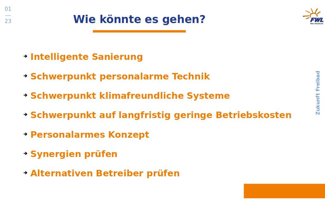 Die Sanierung muss jetzt intensiv neu gedacht werden, damit über eine intelligente Sanierung, durch personalarme Technik und klimafreundliche Systeme langfristig geringe Betriebskosten entstehen. Die immer noch soliden Becken bedürfen wenig Sanierung bis auf der Installation eines Edelstahl-Planschbeckens. Wärmeerzeugung, Steuerungs- und Filtertechnik bedürfen einer Grundsanierung.