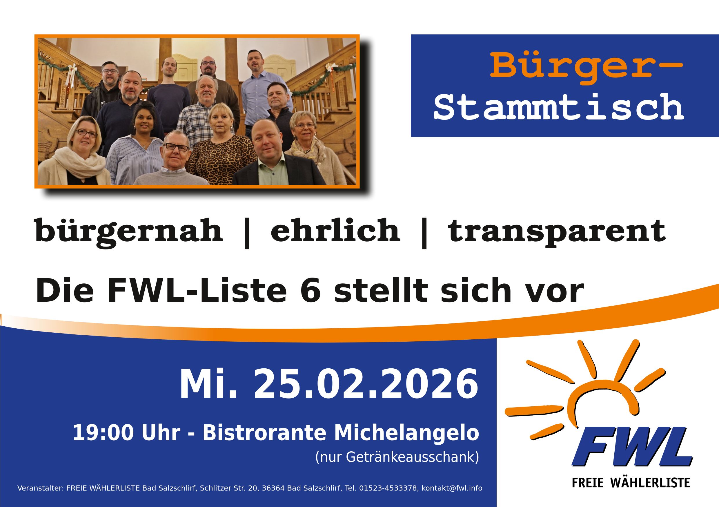 FWL-Bürgerstammtisch "Die FWL-Liste stellt sich vor"