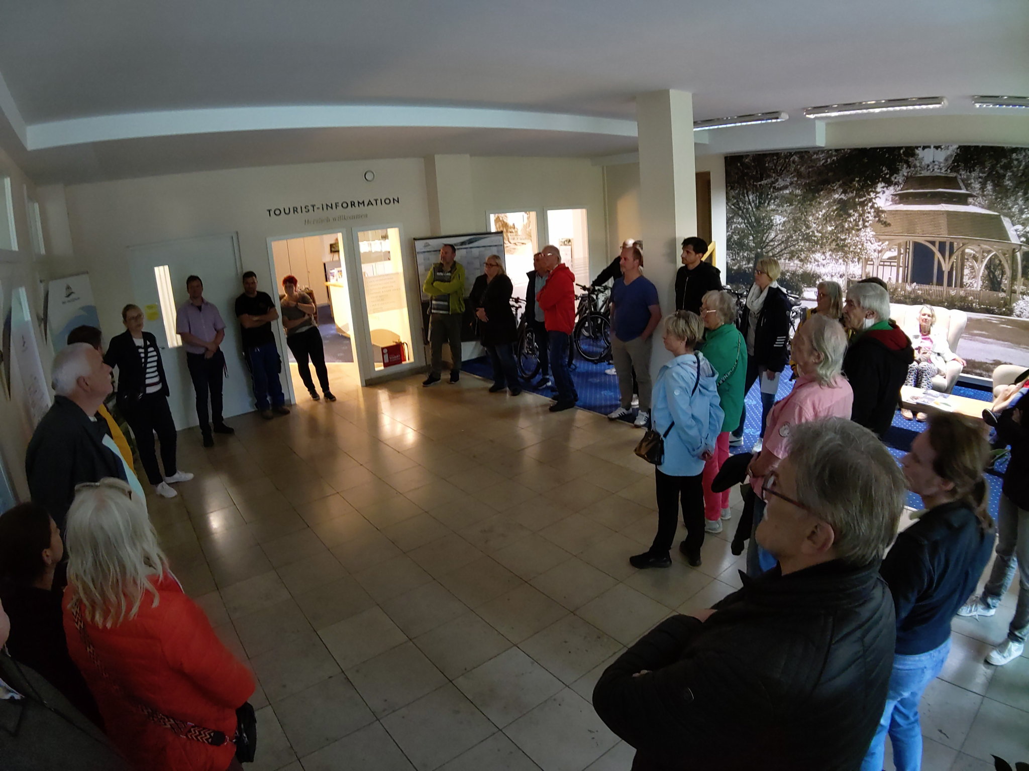 Den Abschluss fand die Runde in der Tourist-Info im Moorbadehaus. Hier ging es selbstverständlich um Tourismuszahlen, aber vor allem auch darum, einen Einblick in das alltägliche Geschehen zu bekommen. Aus der Bürgerschaft stand natürlich im Vordergrund, wie kann ich als Verein die T&S nutzen, wie werden Räumlichkeiten vergeben und wie sieht das in Zukunft aus, kurzerhand ein kurzweiliger Rundgang mit vielen Informationen.