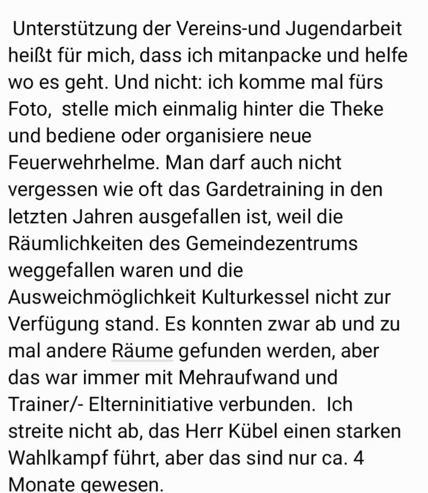 Wahlkampf darf die Chancengleichheit, die Fairness, den Anstand und die Menschlichkeit nicht hintenanstellen, sondern in den Vordergrund rücken. Peter Klug hat es verdient, dass man mit ihm so umgeht, wie man mit Matthias Kübel umgeht. Letztendlich geht es doch einzig darum, dass man als Wähler/in bewerten sollte, welche drängenden Herausforderungen, Aufgaben und Projekte der Amtsinhaber Matthias Kübel in den letzten 12 Jahren gelöst hat bzw. nicht gelöst hat und/oder ob der ehemalige Bürgermeister von Laubach, ob die Person Peter Klug mit konkreten Vorhaben die Gemeinde und den Kurort wieder zu neuer Stärke führen kann.