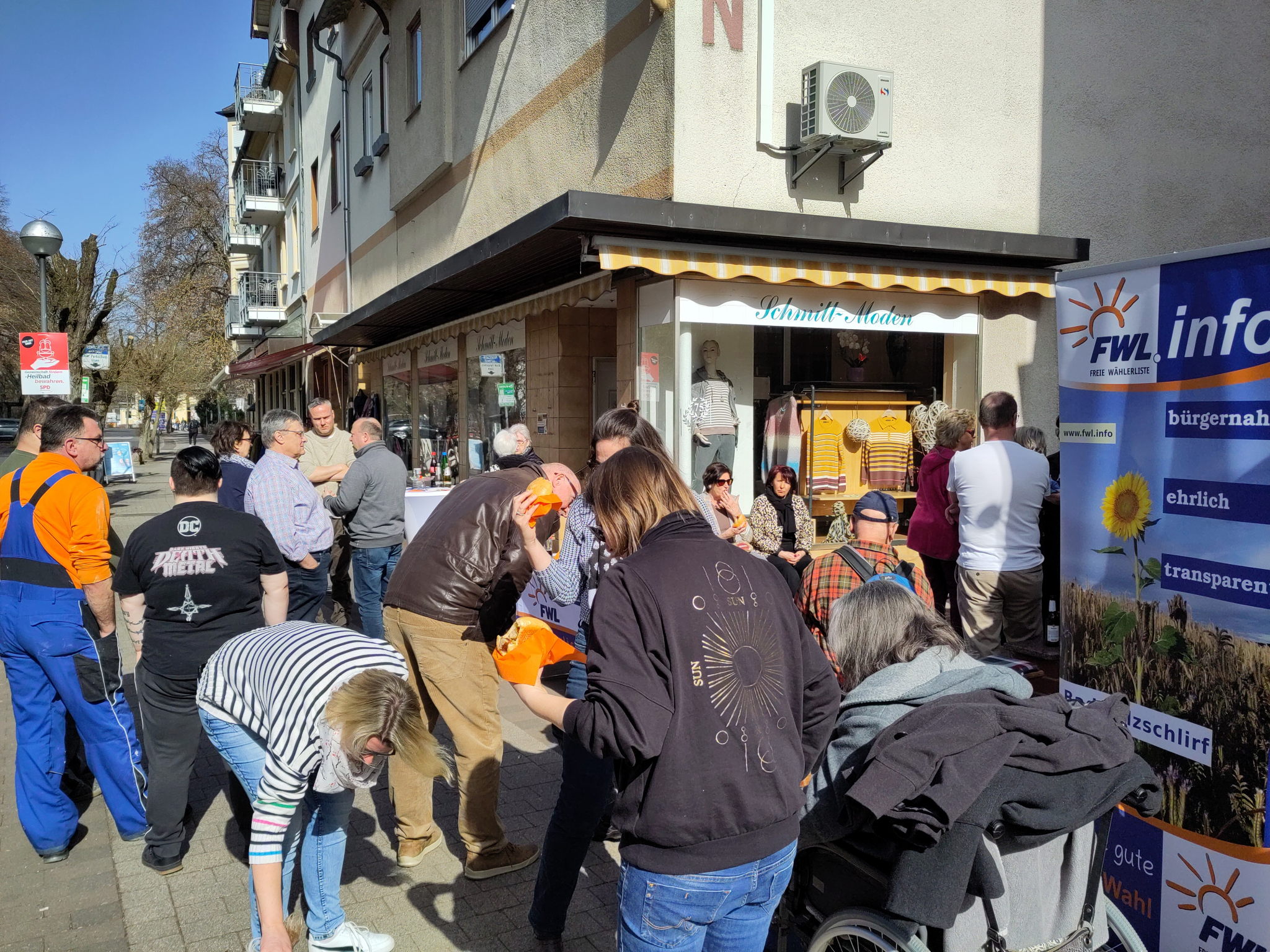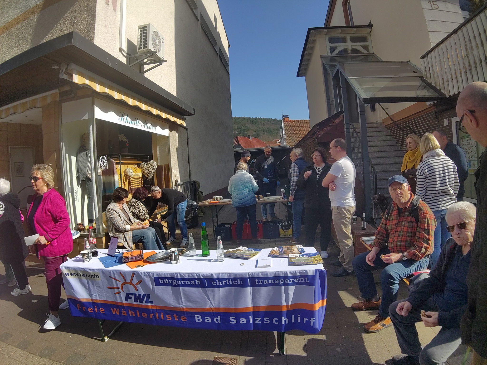 hat der Wahlkampf mit der letzten Woche seinen Abschluss gefunden. Ein letzter Aufruf per Plakate, alle Flyer verteilt und die letzten Veröffentlichungen gemacht. Es gab auch noch zwei Mal die Möglichkeit die FWL-Liste im Gespräch kennen zu lernen. Einmal beim Einkauf in der Lindenstraße "... auf eine Wurst" und weiterhin bei schönsten Wetter im Neubaugebiet "... auf eine Brezel". Hier wurde noch einmal ganz deutlich, es herrscht kein Desinteresse, sondern die kommunalpolitische Demokratie ist auf jeden Fall schon einmal ein Gewinner bei dieser Wahl.