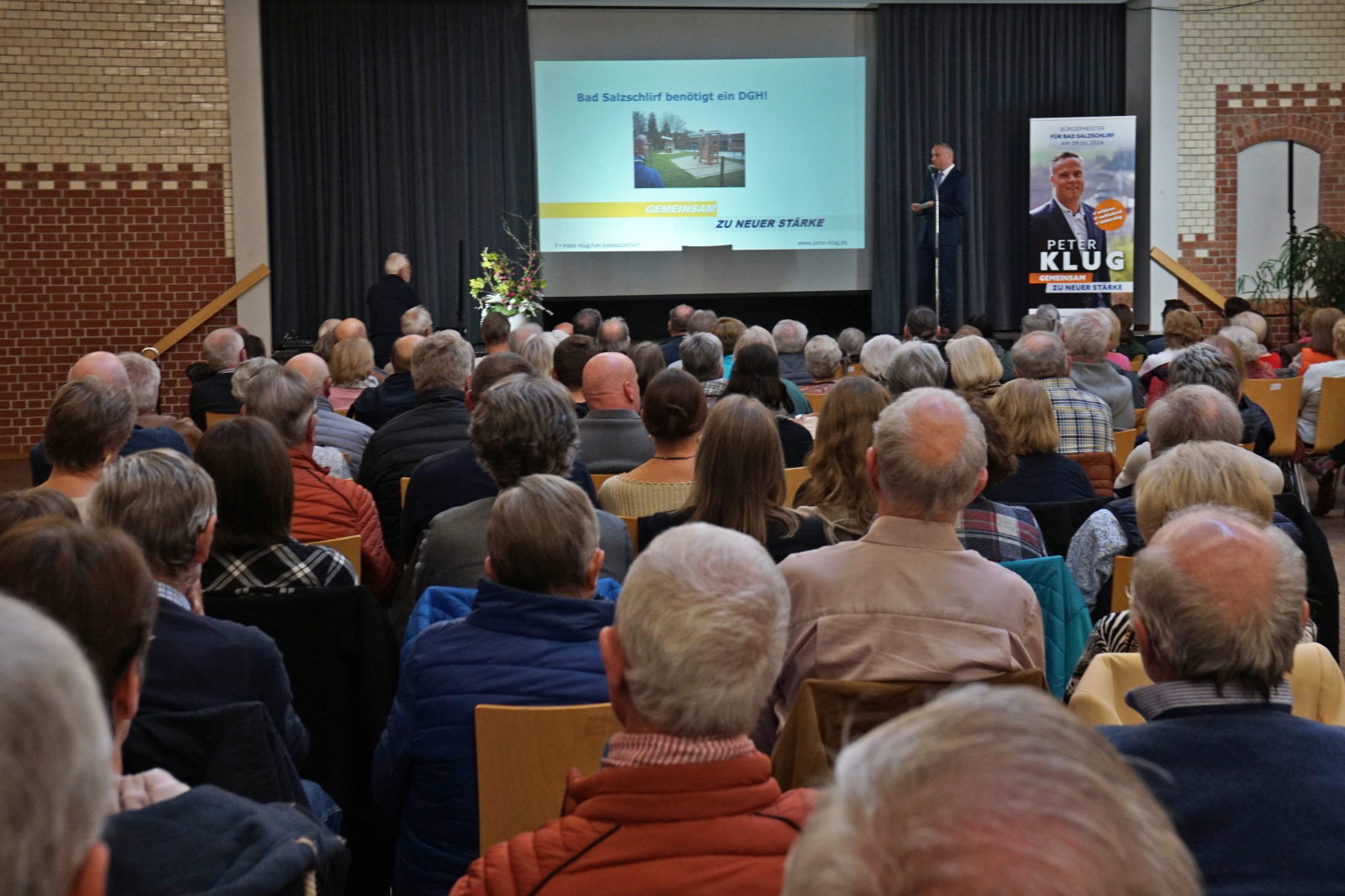 Es herrschte kein Desinteresse, sondern alt und jung verfolgten mit großer Aufmerksamkeit die Ausführungen des Bewerbers Peter Klug um das Bürgermeisteramt in Bad Salzschlirf am 09.06.2024.