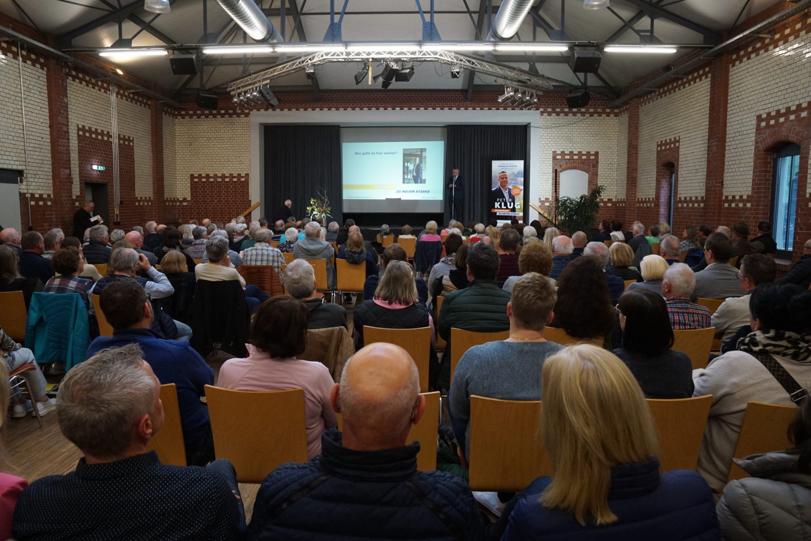 Über 240 Zuhörer waren in den Kulturkessel in Bad Salzschlirf gekommen und zeigten großes Interesse daran, den Kandidaten der Freien Wähler kennenzulernen. Sie verfolgten mit Aufmerksamkeit die Ausführungen von Peter Klug.